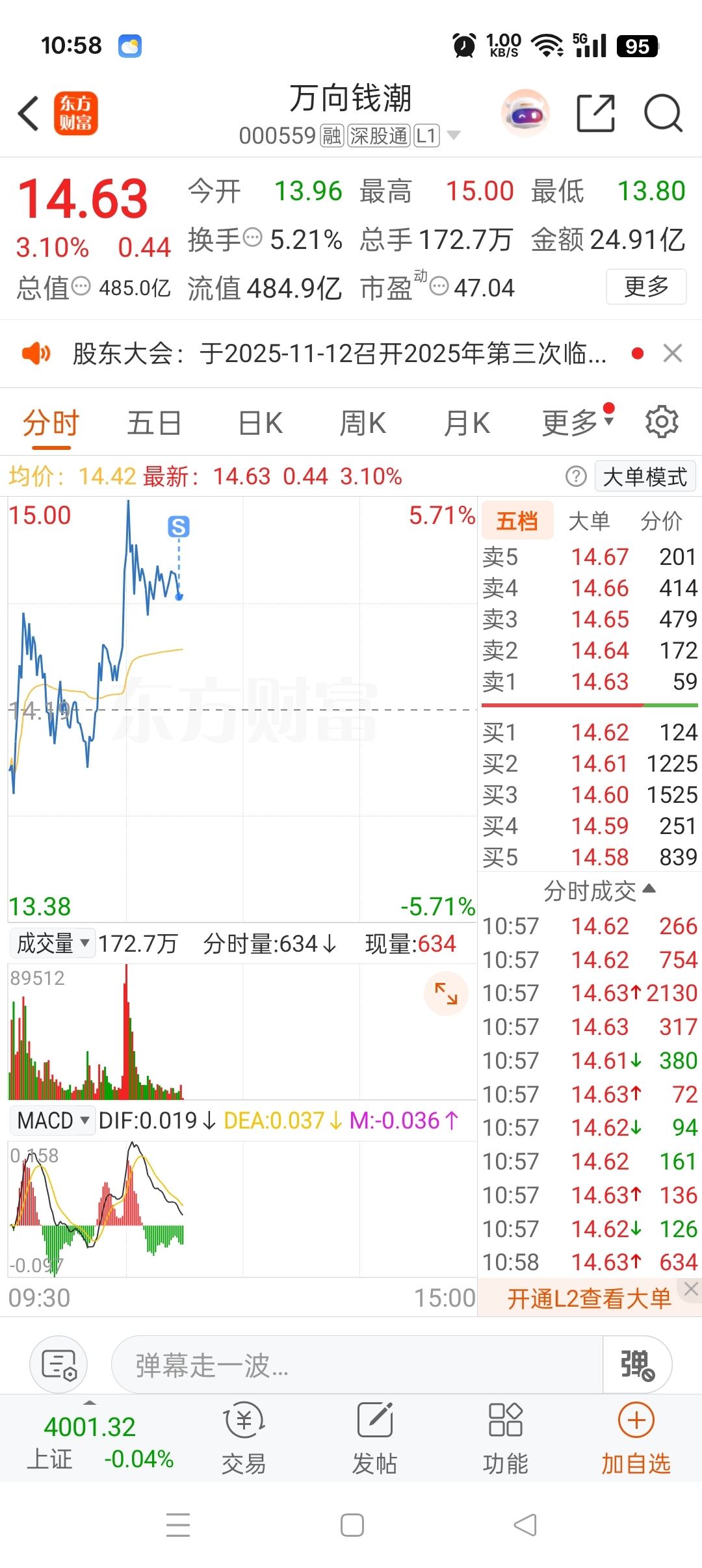 $万向钱潮(SZ000559)$ 笑死,拿了一个月,挣15个点,哎,没劲。