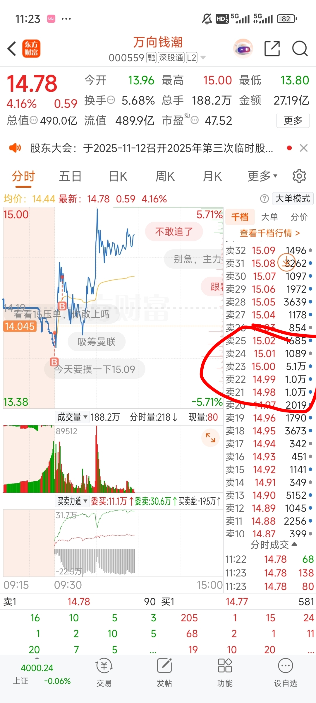 $万向钱潮(SZ000559)$ 过15跟上板没区别