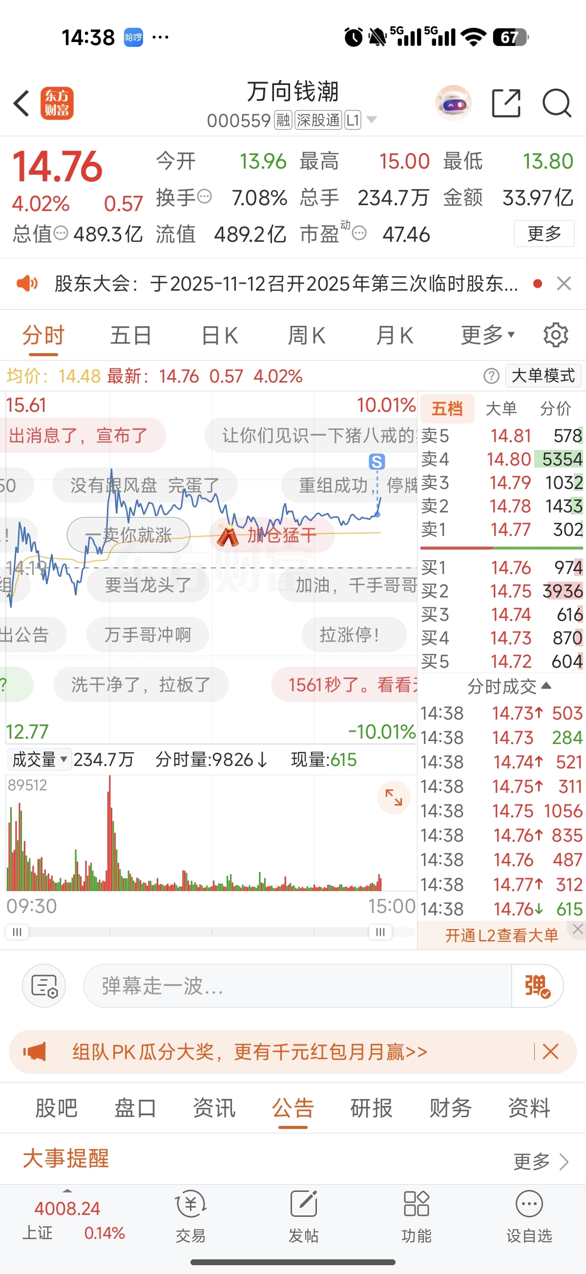 $万向钱潮(SZ000559)$ 一卖就涨,我也是醉了