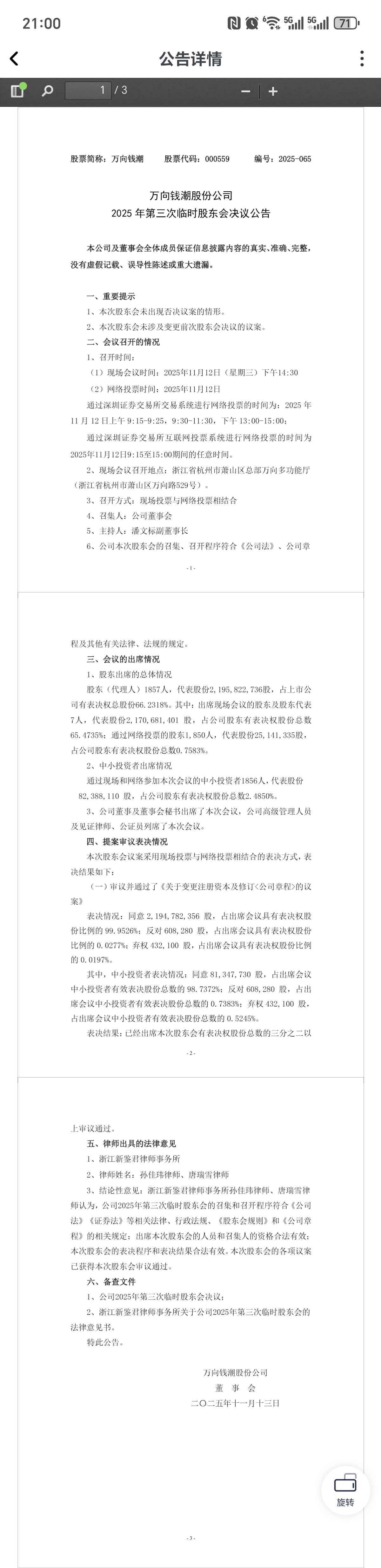 $万向钱潮(SZ000559)$ 大家看看,利好还是利空