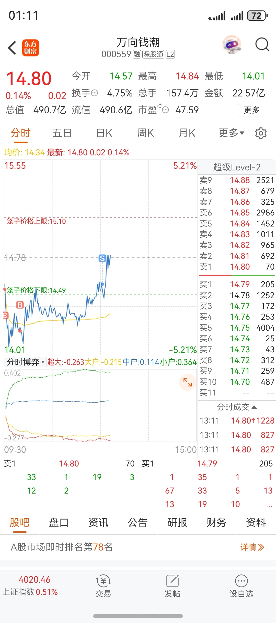$万向钱潮(SZ000559)$ 我不卖你不拉