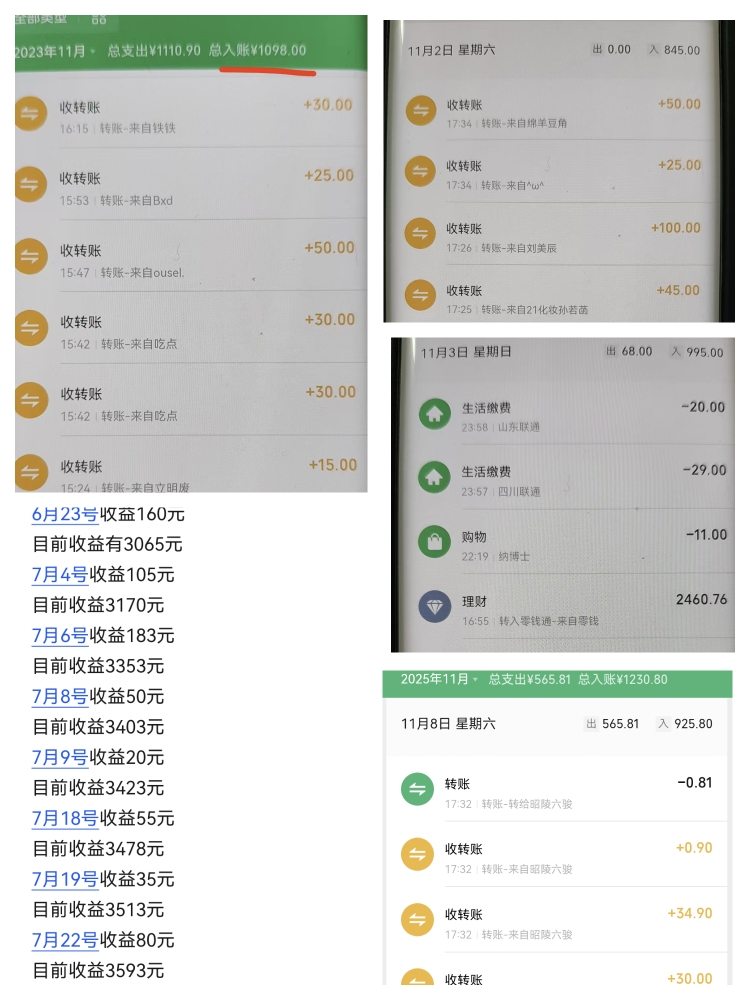 $万向钱潮(SZ000559)$ 我确实是学生,而且还亏了不少钱,但是我没有像我父母索要钱财去炒股,我都是通过奖学金和靠脑子赚的钱,比如艺考志愿,十一二天大概赚4400多做过两年有8000多,这两天体测在测,我测了一天,赚了收入有700多,前两年,两天能赚将近1.5k-2k,之前的时候还在学校卖过斗鱼,有时候一只斗鱼就能卖120,陆陆续续偶尔卖的,有大概3500块钱吧(成本大概1000块钱,净利润2000多块钱)还有就是过年的一些压岁钱,留了一小部分,平时饭钱就2000,大概我会攒800~1200(没什么需求,但是这几年也去了好多地方旅游宜昌三峡,陕西榆林拨浪谷(看路遥笔下的平凡的世界)湖北武汉,南京,江苏,内蒙古,徐州 ,上海等…也没有亏待自己)