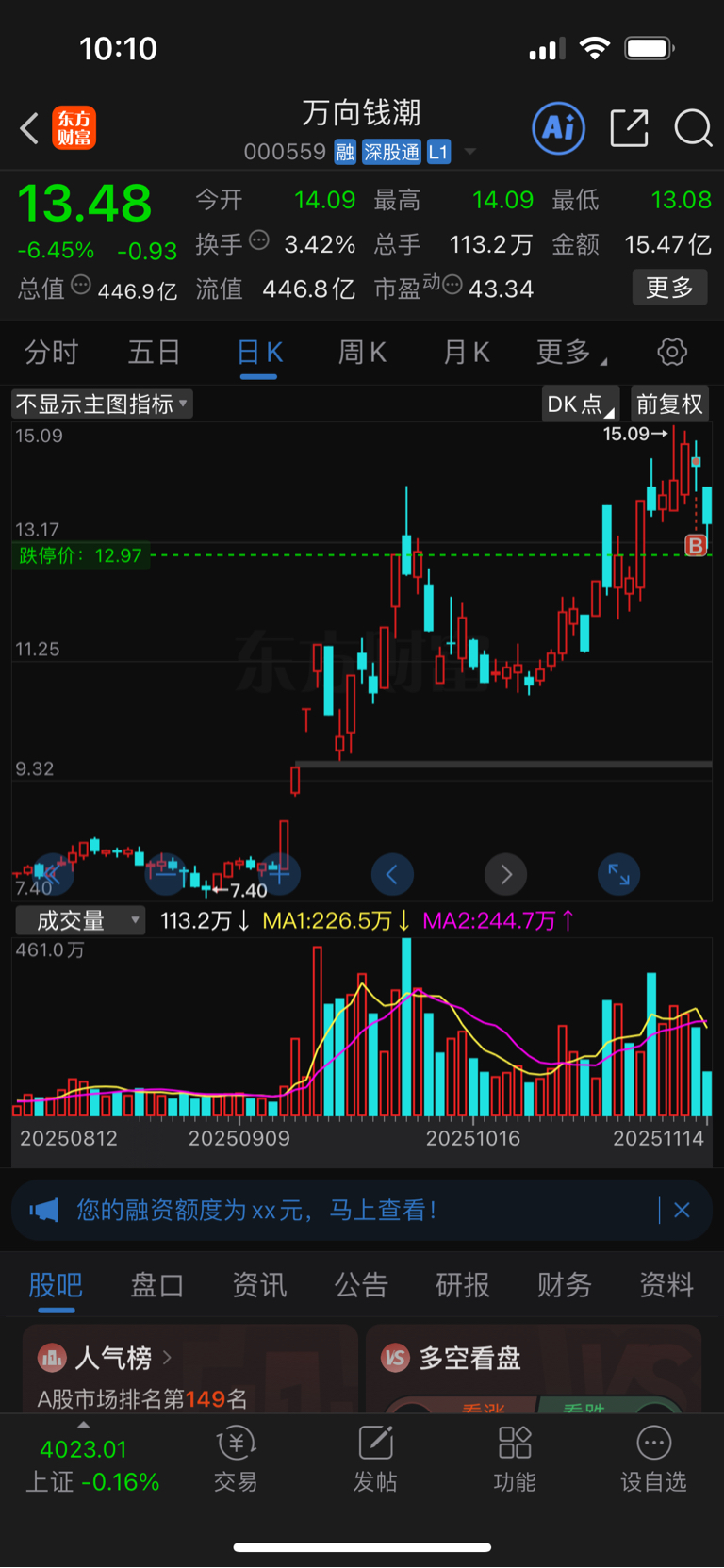 $万向钱潮(SZ000559)$ 不要害怕,我还在