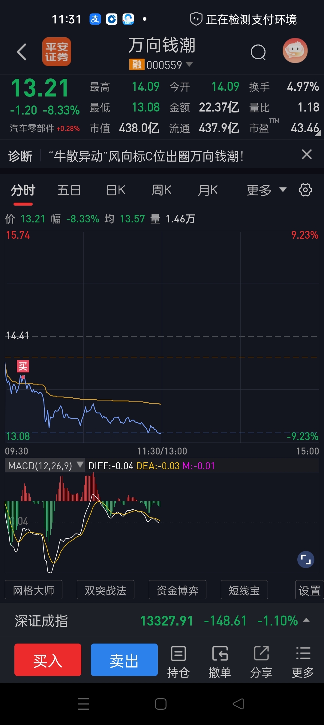 $万向钱潮(SZ000559)$ 我想哭昨天进来的,早上还加仓