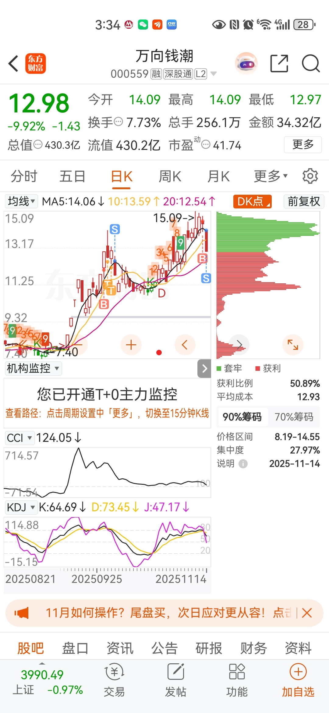$万向钱潮(SZ000559)$ 每次都逃命