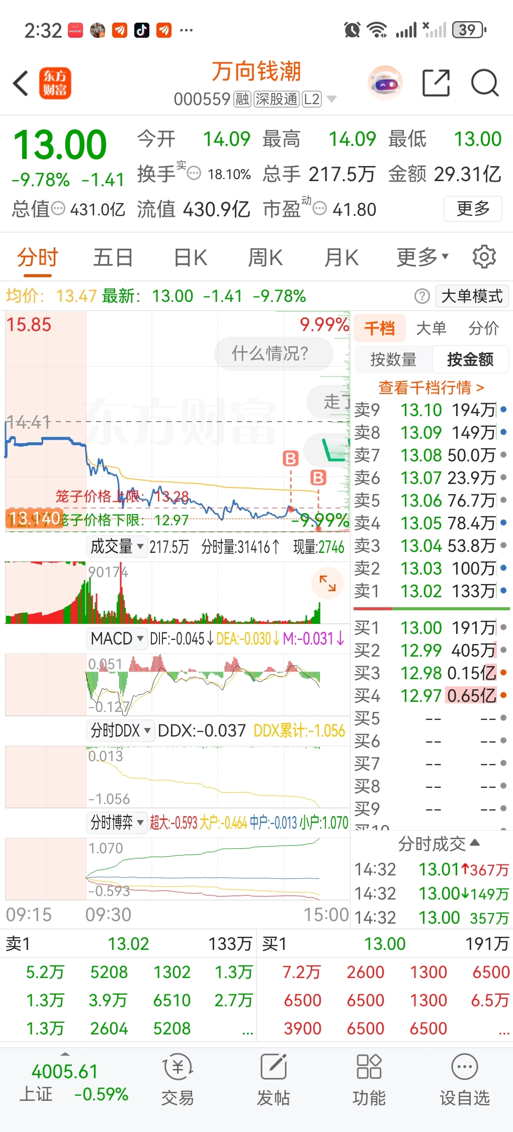 $万向钱潮(SZ000559)$ 准备躺平了。