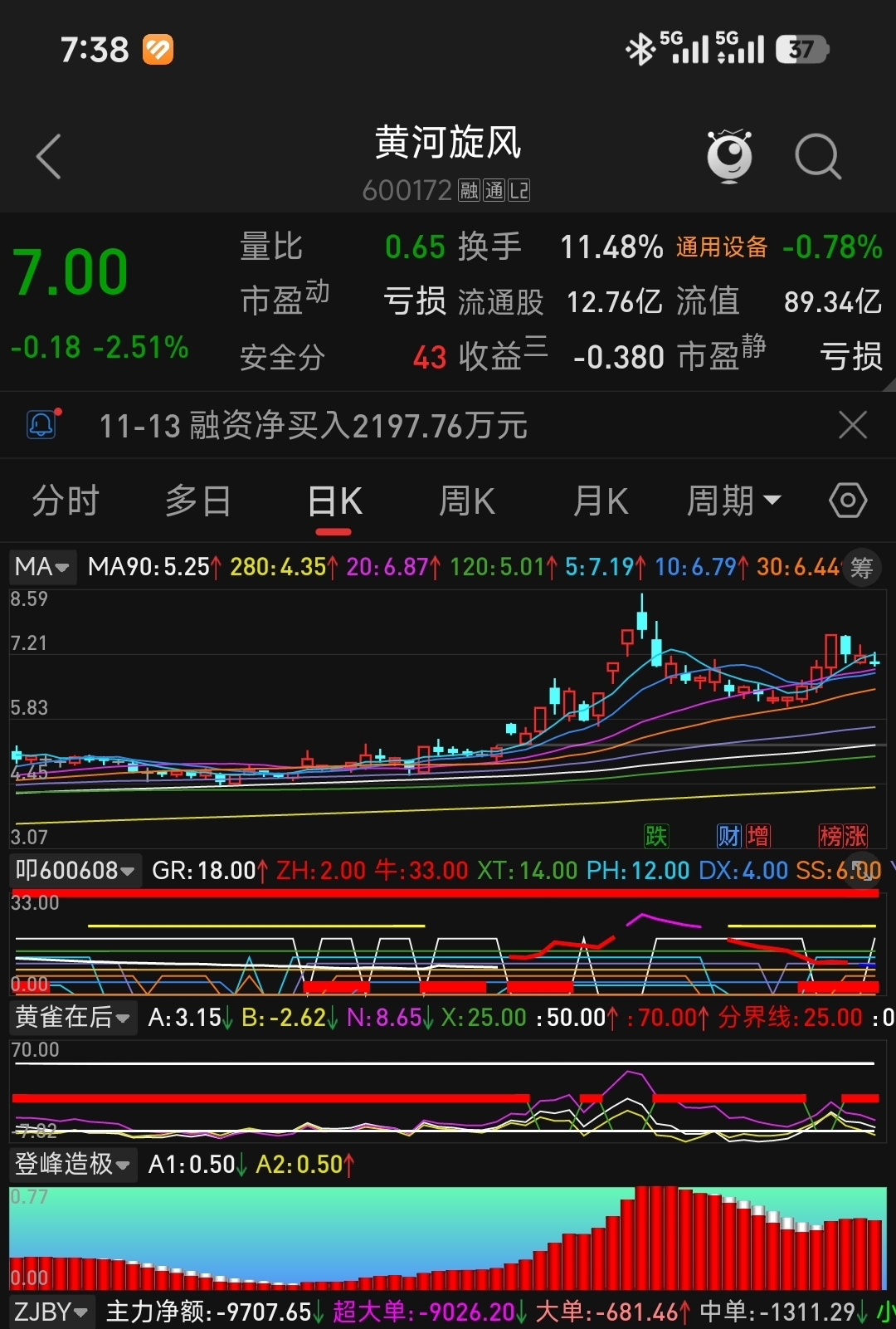 5000票唯一之黄河旋风。这个是今天上午选出来的公式票,也在上午7元建仓,收盘平