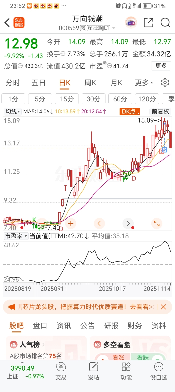 $万向钱潮(SZ000559)$ 差点站在山顶了