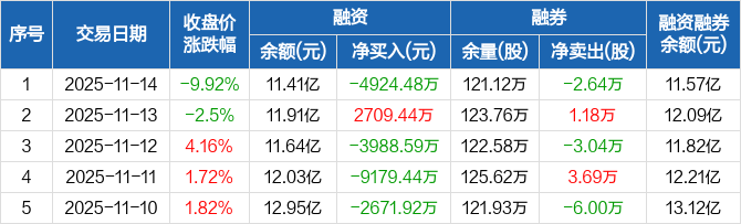 万向钱潮:融资净偿还4924.48万元,融资余额11.41亿元(11-14)