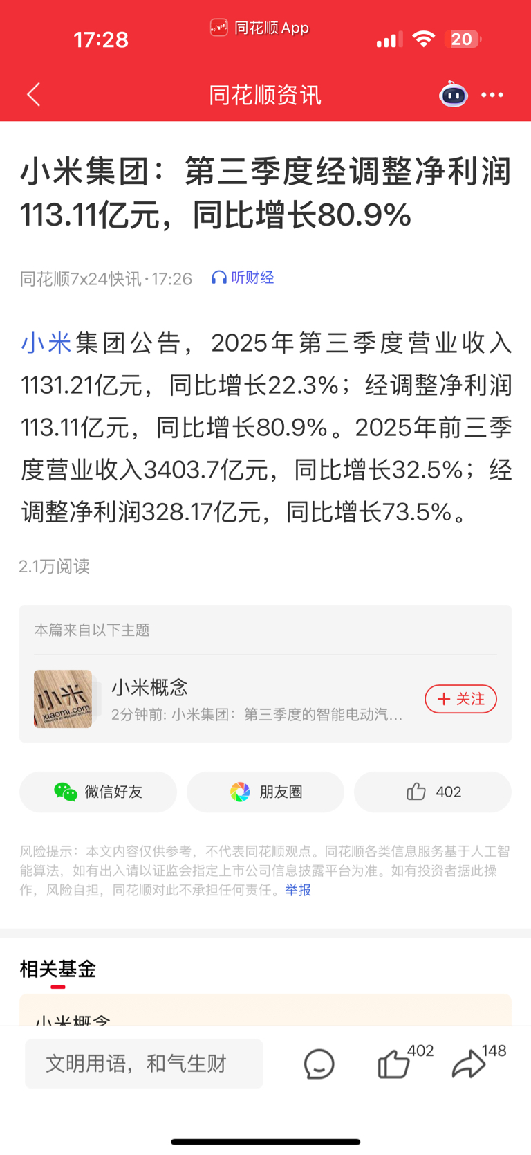 小米发布第三季度经调整季报,请大神分析下明天万向能抢救一下吗