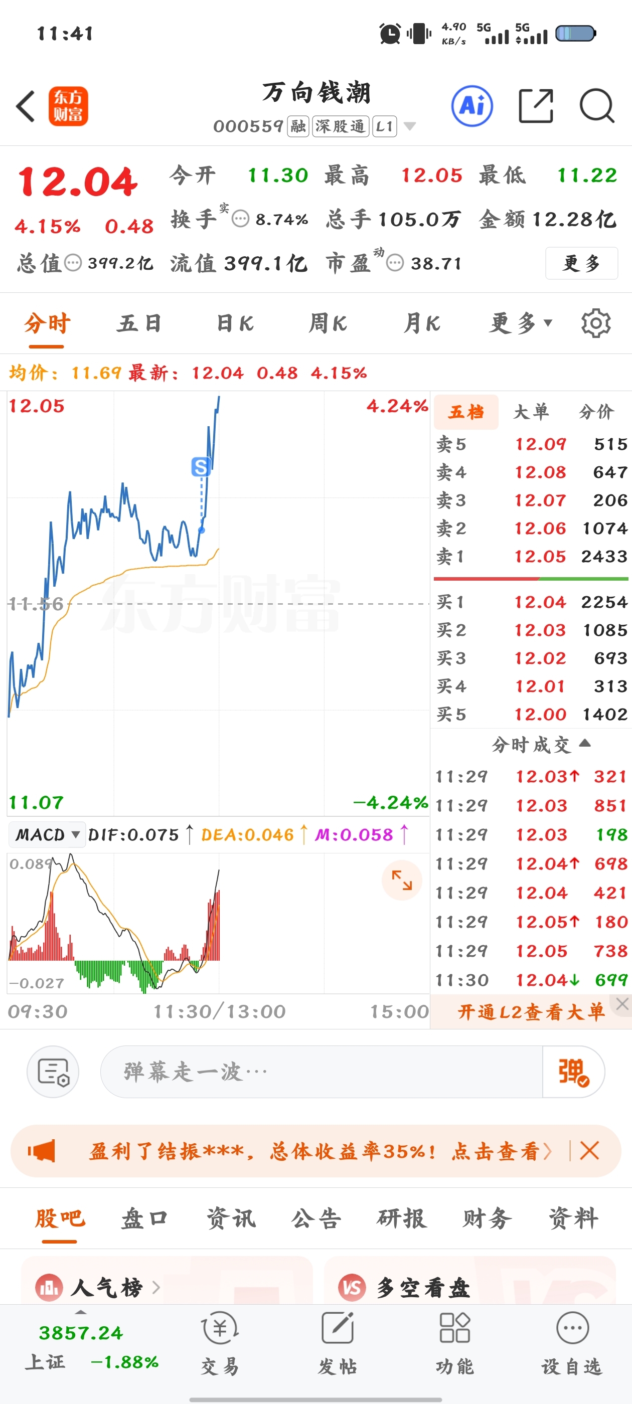 $万向钱潮(SZ000559)$ 你就盯着我这20手?