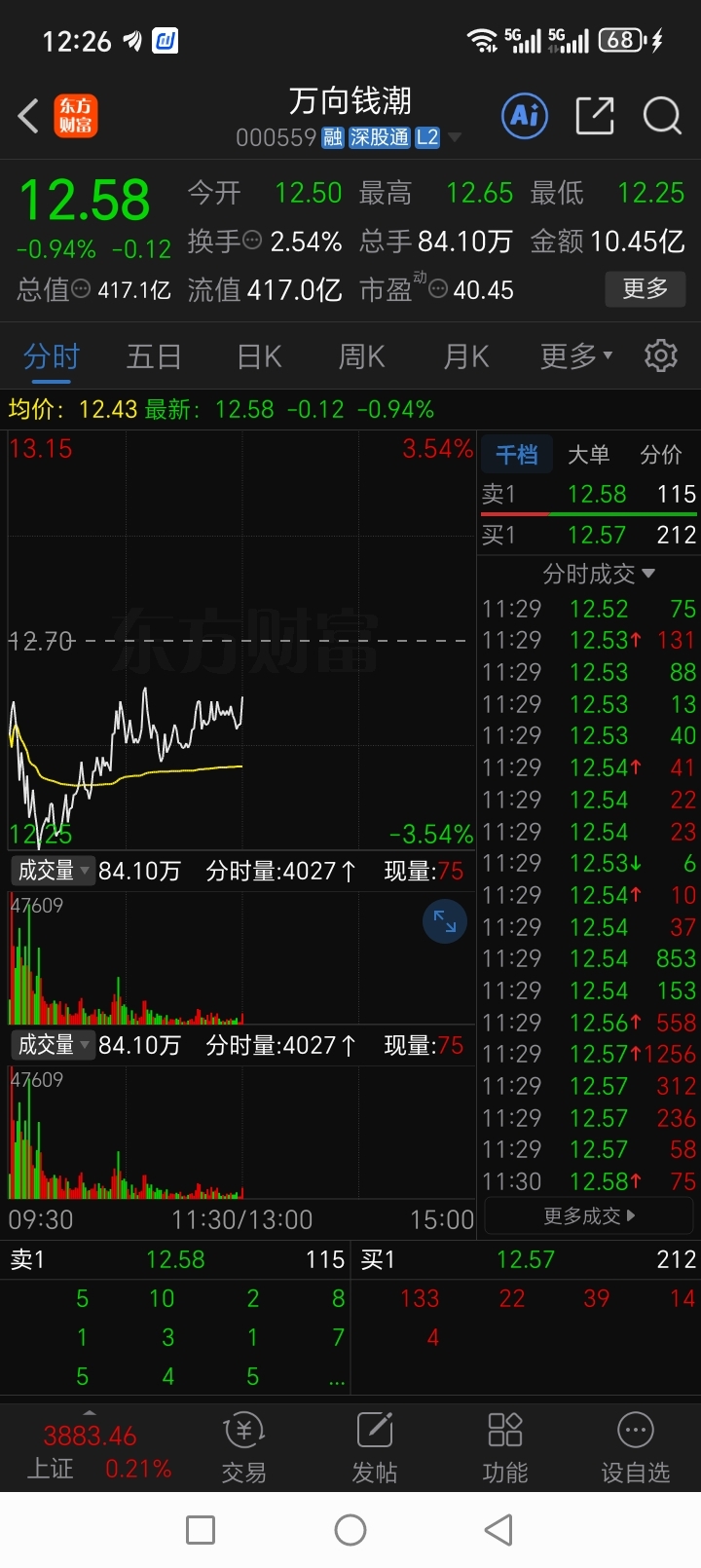 万向钱潮庄家进场了,全是大单买入,万向钱潮下午涨停板了