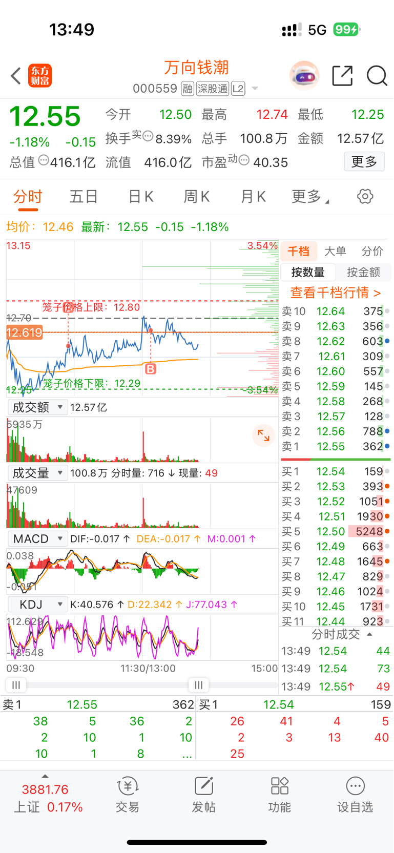 $万向钱潮(SZ000559)$ 给我挂山顶了呀 风好凉爽 不影响我看好你