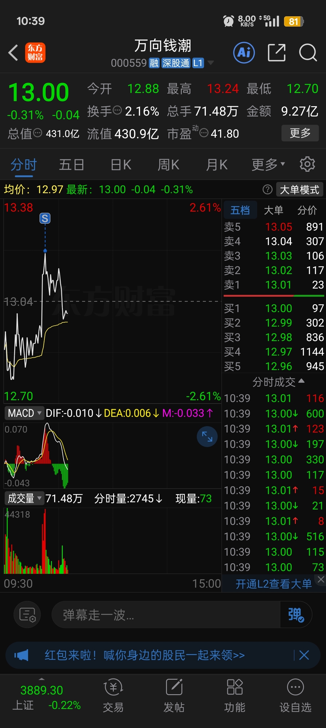 $万向钱潮(SZ000559)$ 这个票做t太爽了,很有规律性,把握好节奏,与庄共舞,方为赢家!留了底仓,先观望择机接回!感谢庄让我吃了近10个点的大肉