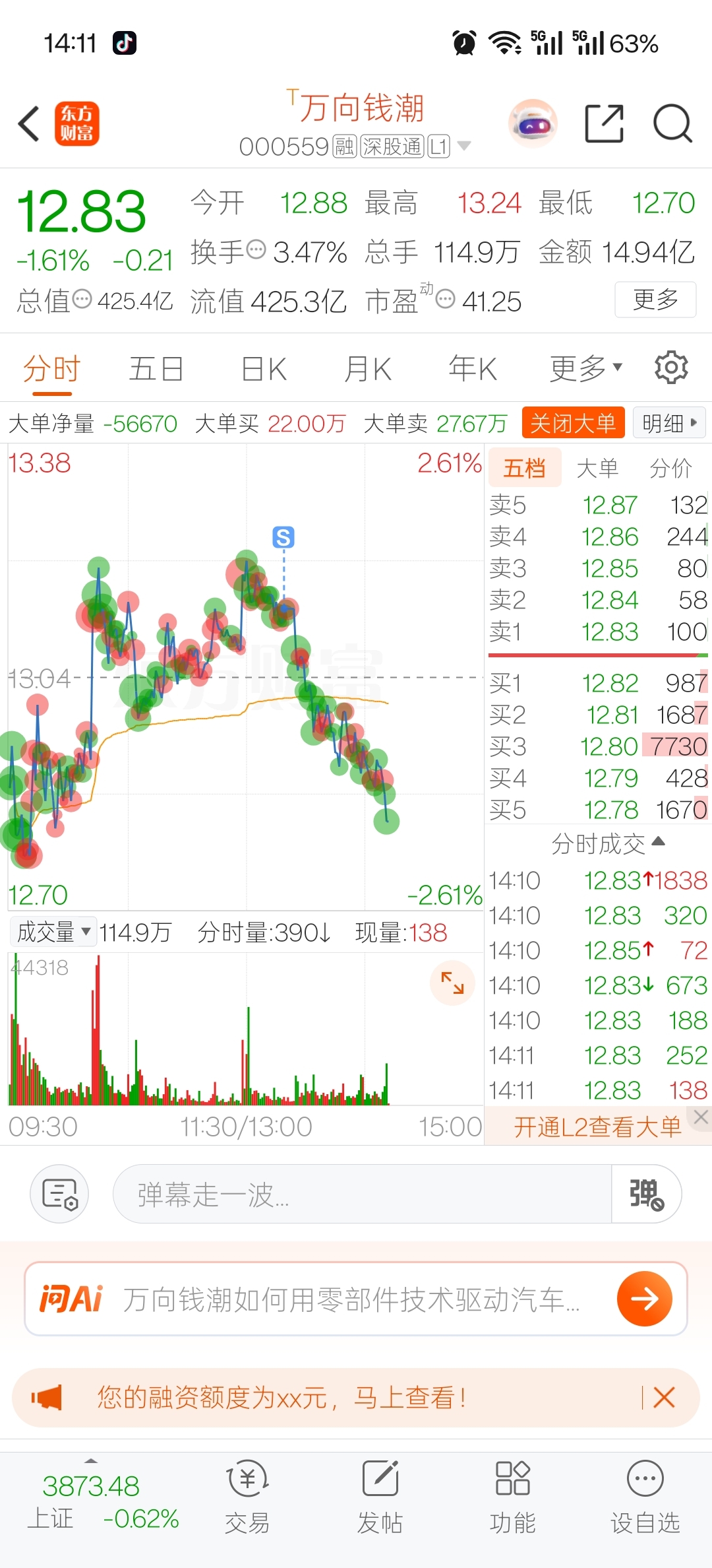 $万向钱潮(SZ000559)$ 我啥时候变成主力了