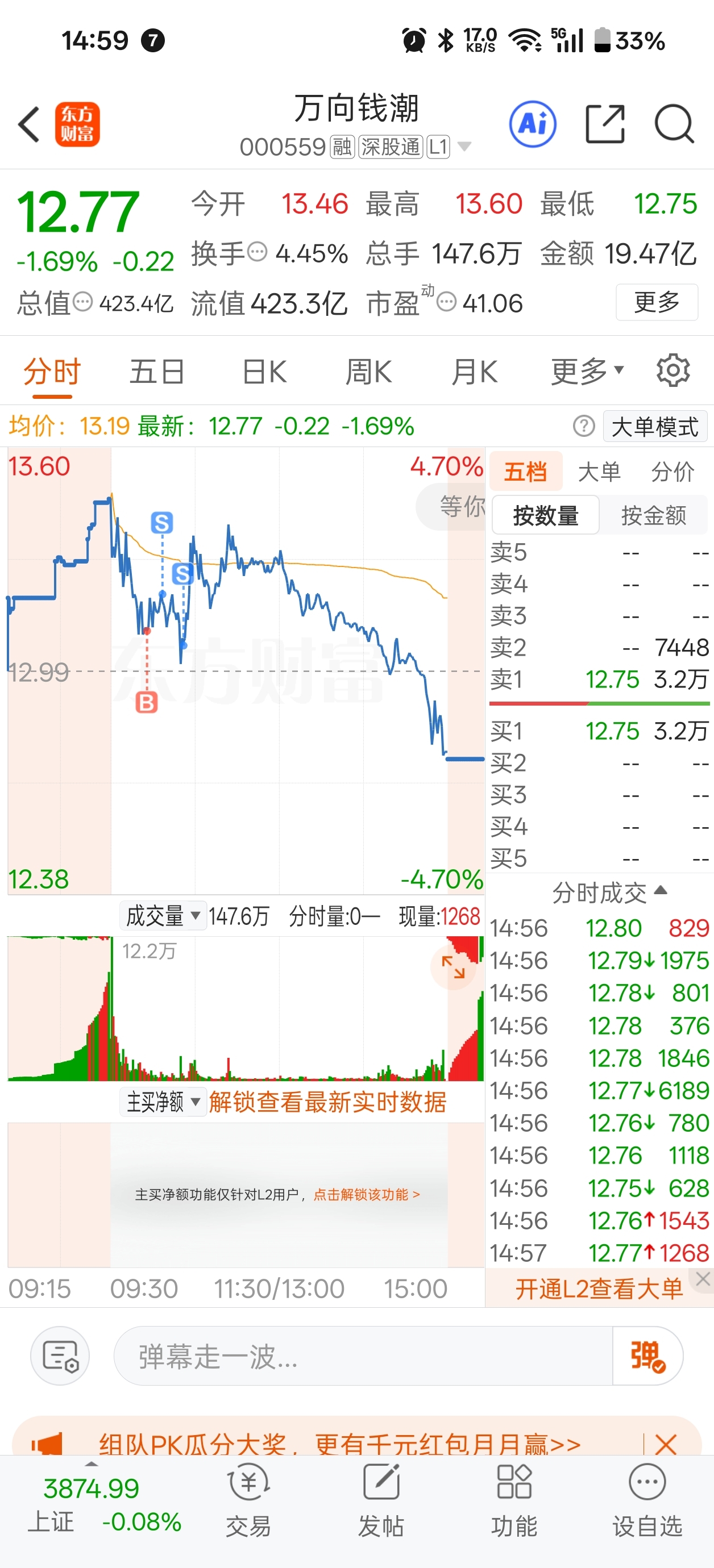 $万向钱潮(SZ000559)$ 想不到卖对了