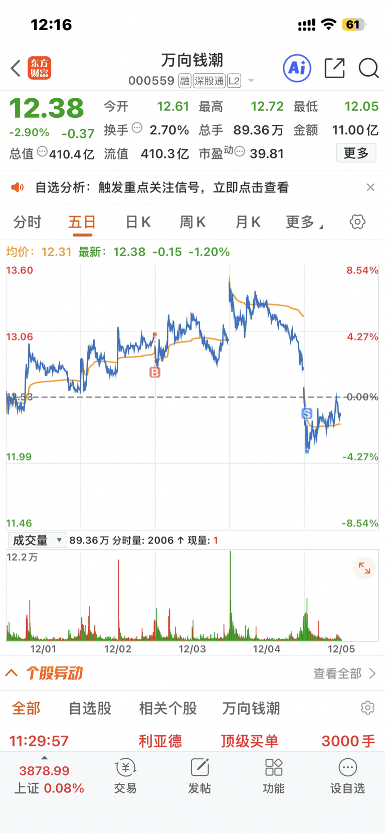 $万向钱潮(SZ000559)$ 割了,伤了我两次