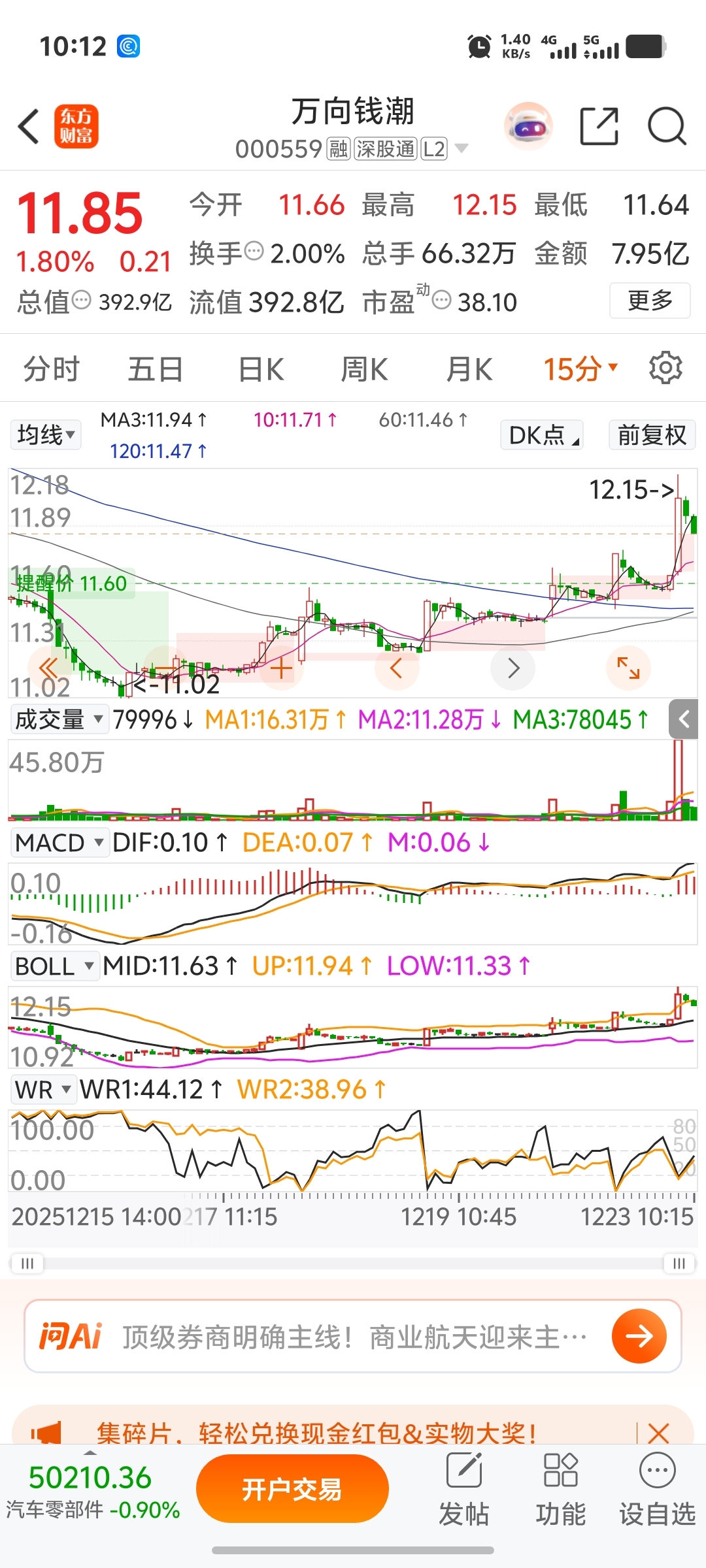 $万向钱潮(SZ000559)$ 涨15分钟跌6个15分钟