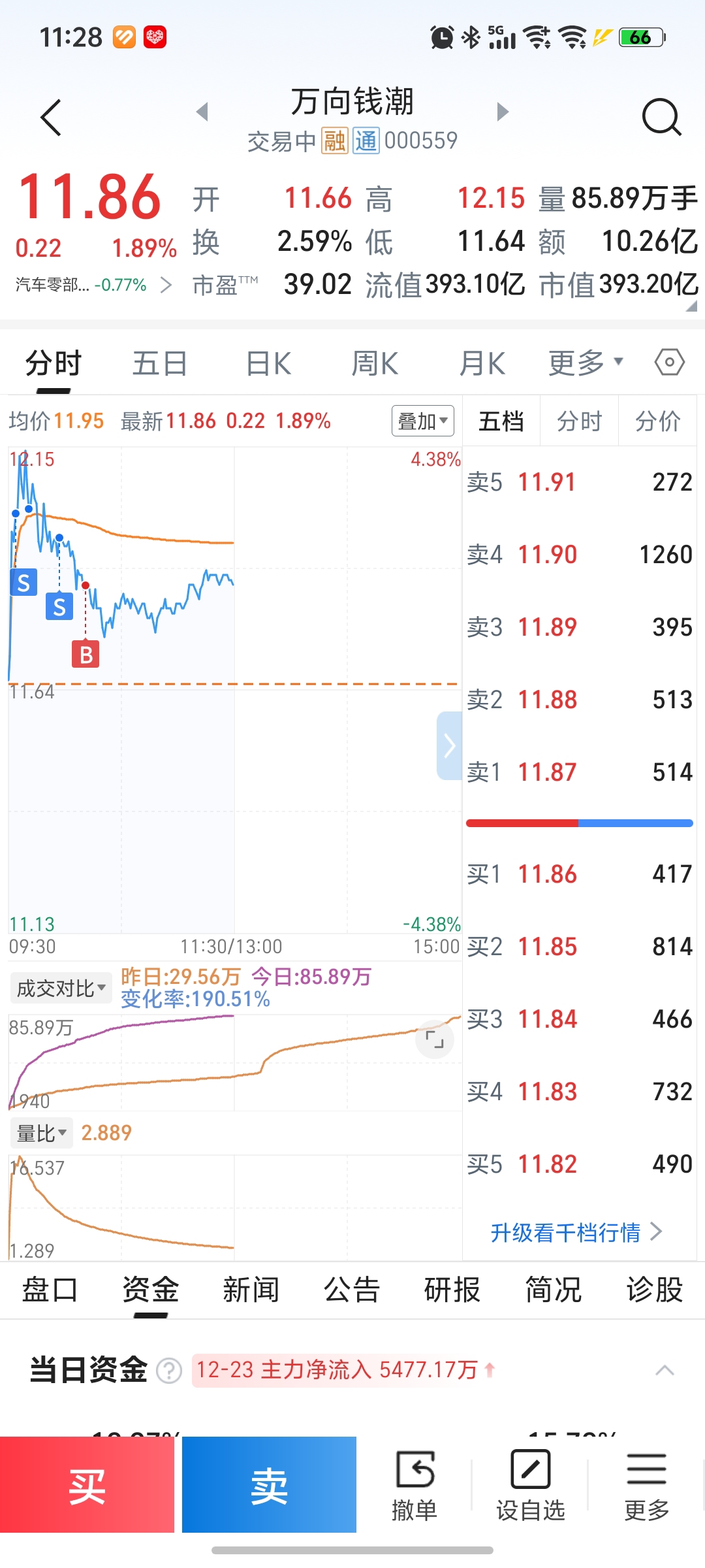 $万向钱潮(SZ000559)$ 趋势缓慢上升,早盘回本全清了,低吸400股打底仓,上12没问题
