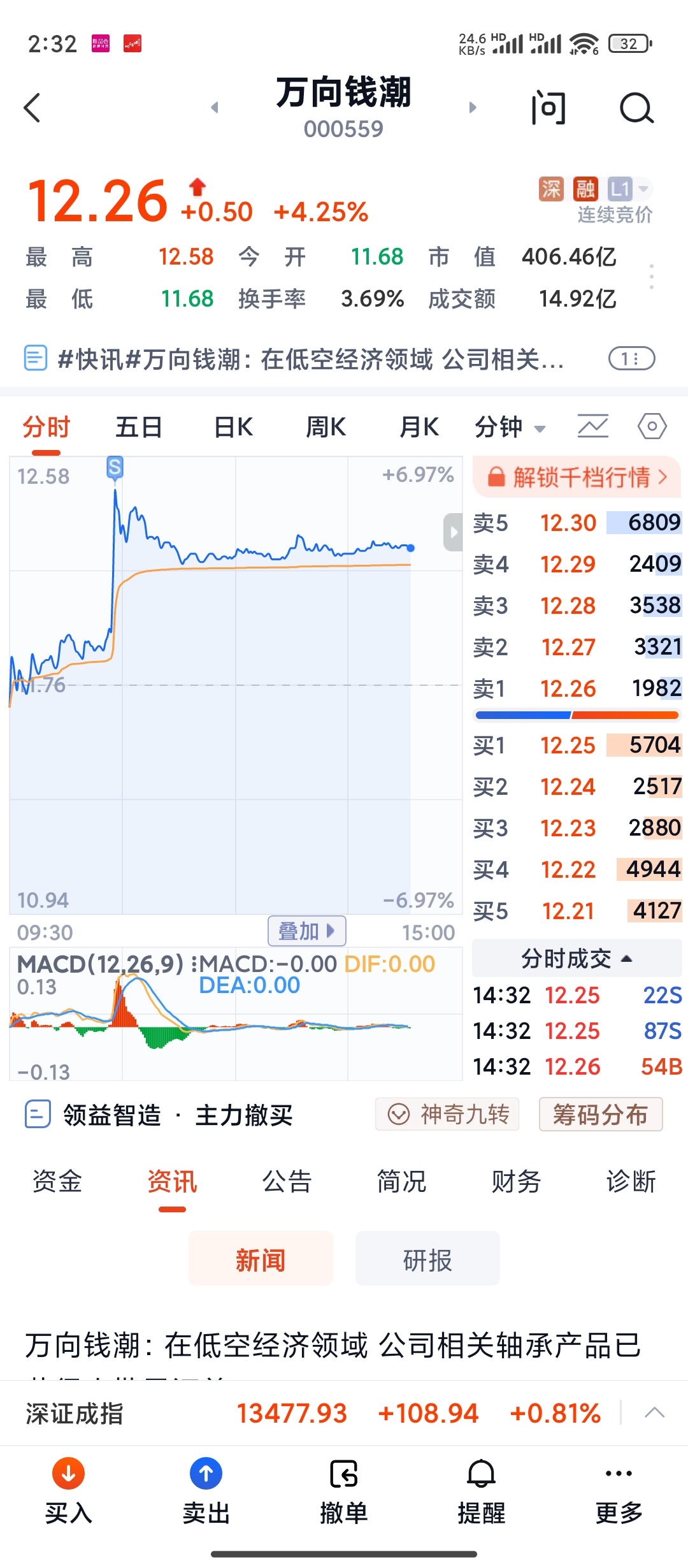 $万向钱潮(SZ000559)$ 今天卖在最高位。