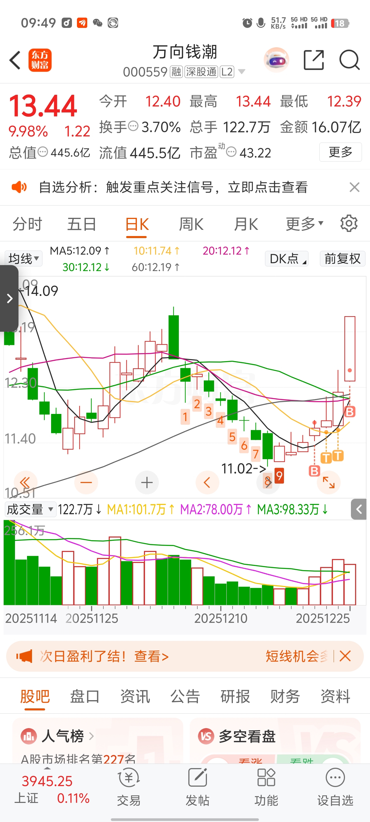 $万向钱潮(SZ000559)$ 九阳神功可成