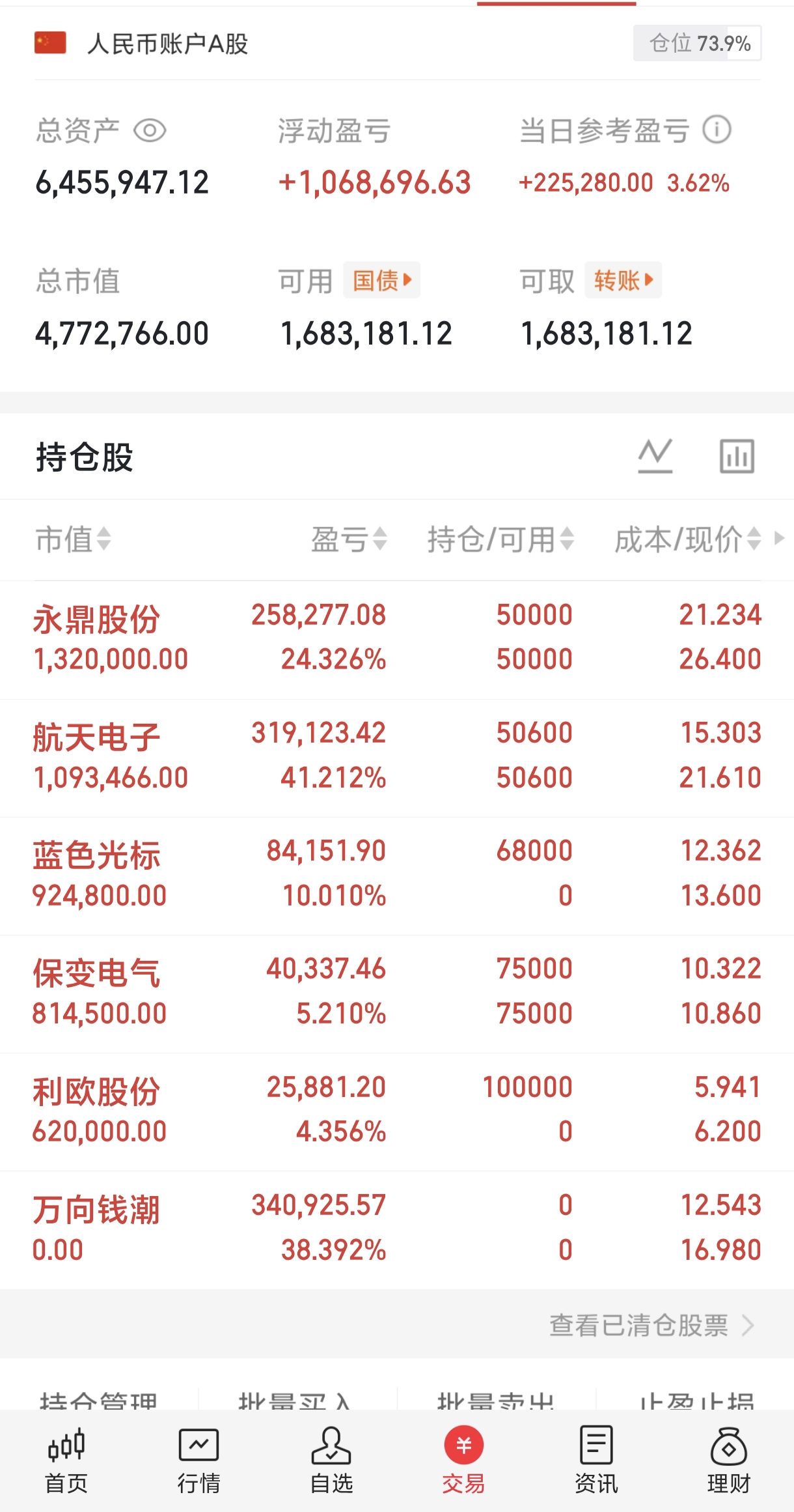 好几天没有操作仓位了,今天打开一看,好多都吃肉了