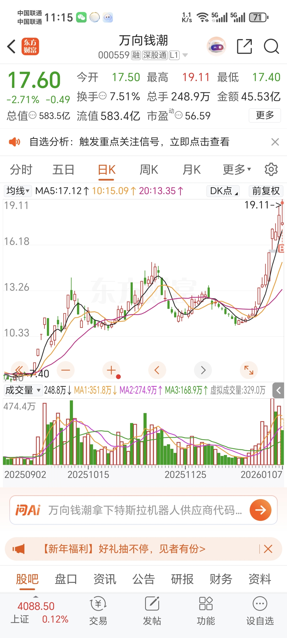 $万向钱潮(SZ000559)$ 就问你精不精准