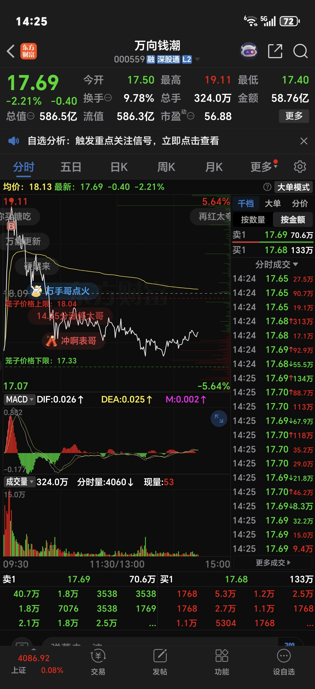 $万向钱潮(SZ000559)$ 我买了,你们受死