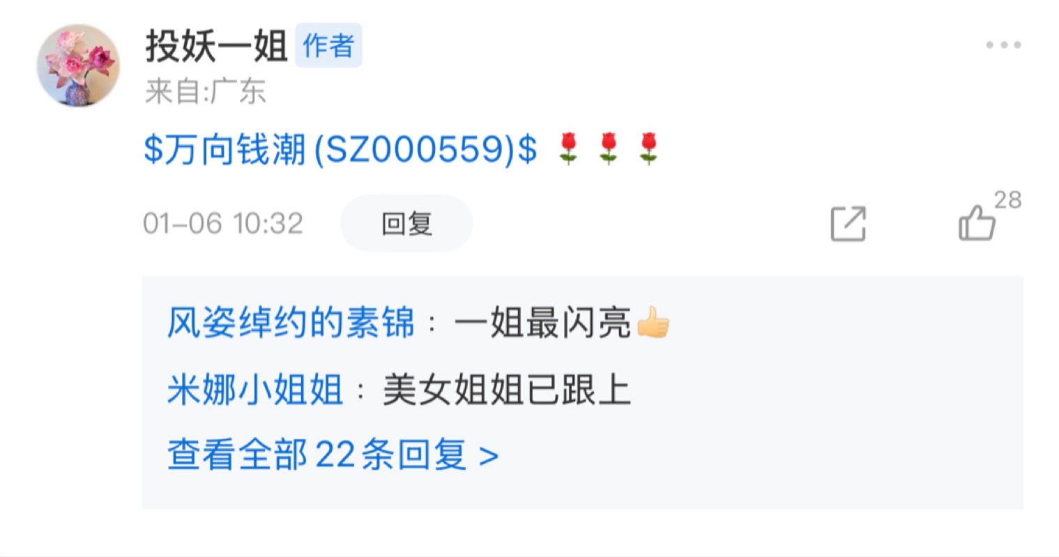 温馨提示: 1.根据《证券法》规定,禁止编造、传播虚假信息或者误导性信息,扰乱证券市场;2.用户在本社区发表的所有资料、言论等仅代表个人观点,与本网站立场无关,不对您构成任何投资建议。用户应基于自己的独立判断,自行决定证券投资并承担相应风险。《东方财富社区管理规定》