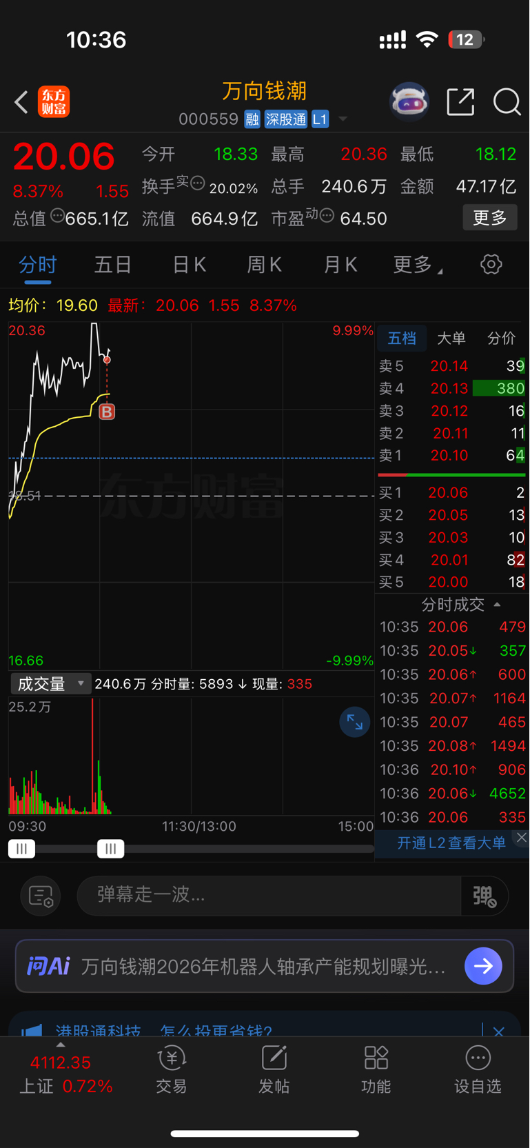 $万向钱潮(SZ000559)$ 炸了,我就加点