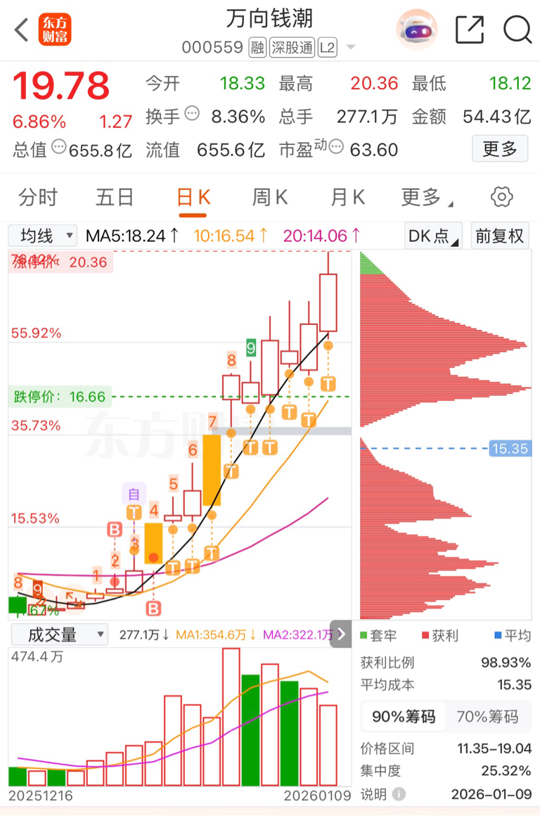 $万向钱潮(SZ000559)$ 最低点全仓买进,一路t上去,没有做到最完美,不过也满足了。