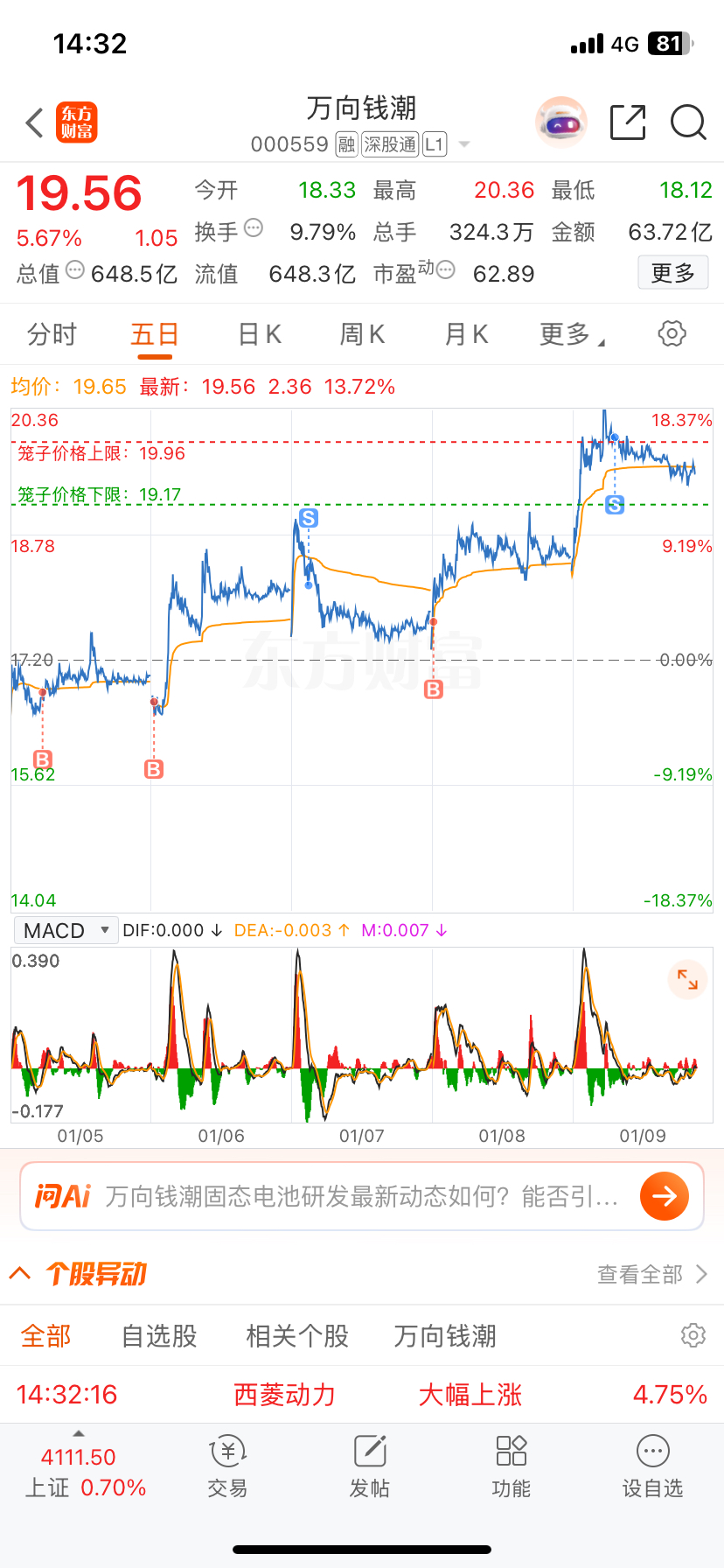 $万向钱潮(SZ000559)$ 早上如果封住,周一还有大肉,封不住,周一得低开了,
