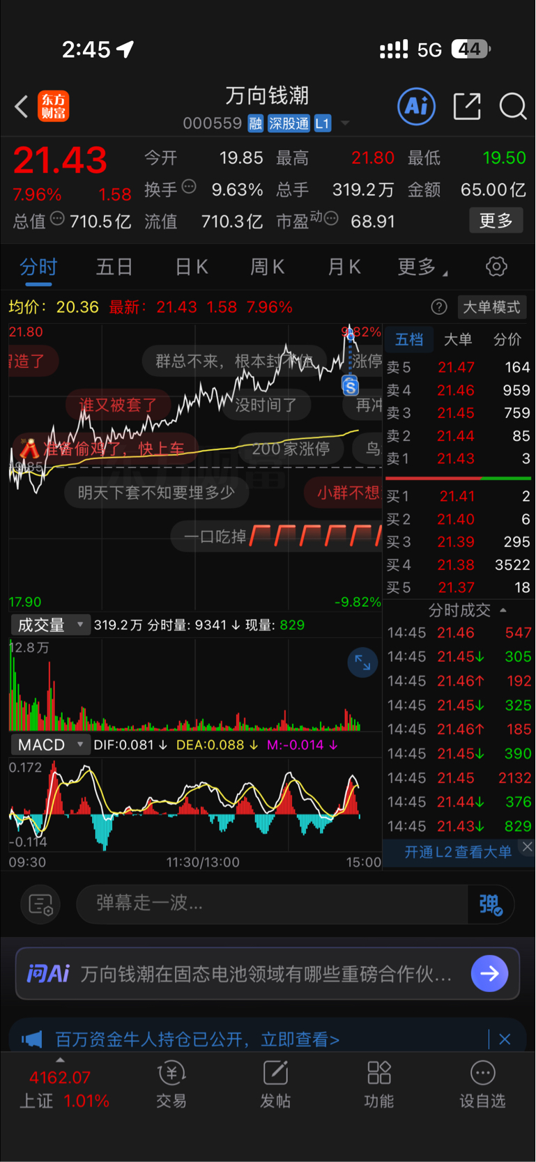 温馨提示: 1.根据《证券法》规定,禁止编造、传播虚假信息或者误导性信息,扰乱证券市场;2.用户在本社区发表的所有资料、言论等仅代表个人观点,与本网站立场无关,不对您构成任何投资建议。用户应基于自己的独立判断,自行决定证券投资并承担相应风险。《东方财富社区管理规定》