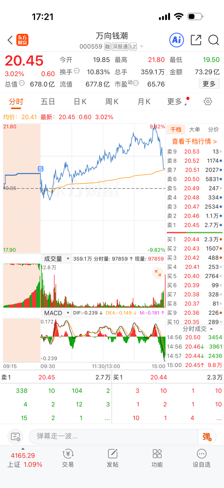 $万向钱潮(SZ000559)$ 看到大家都赚钱,难受,以为竞价能上去,结果来下了