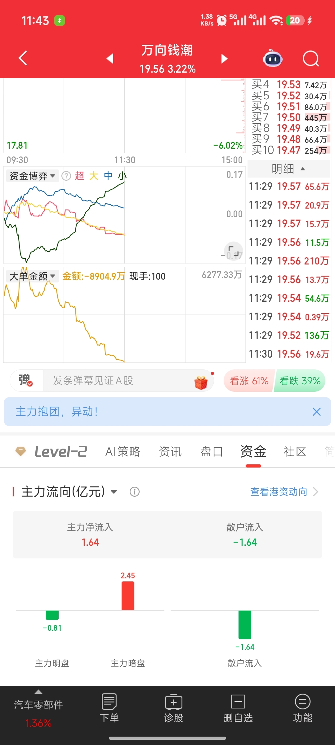 $万向钱潮(SZ000559)$ 暗盘主力资金流入,小散疯狂出货