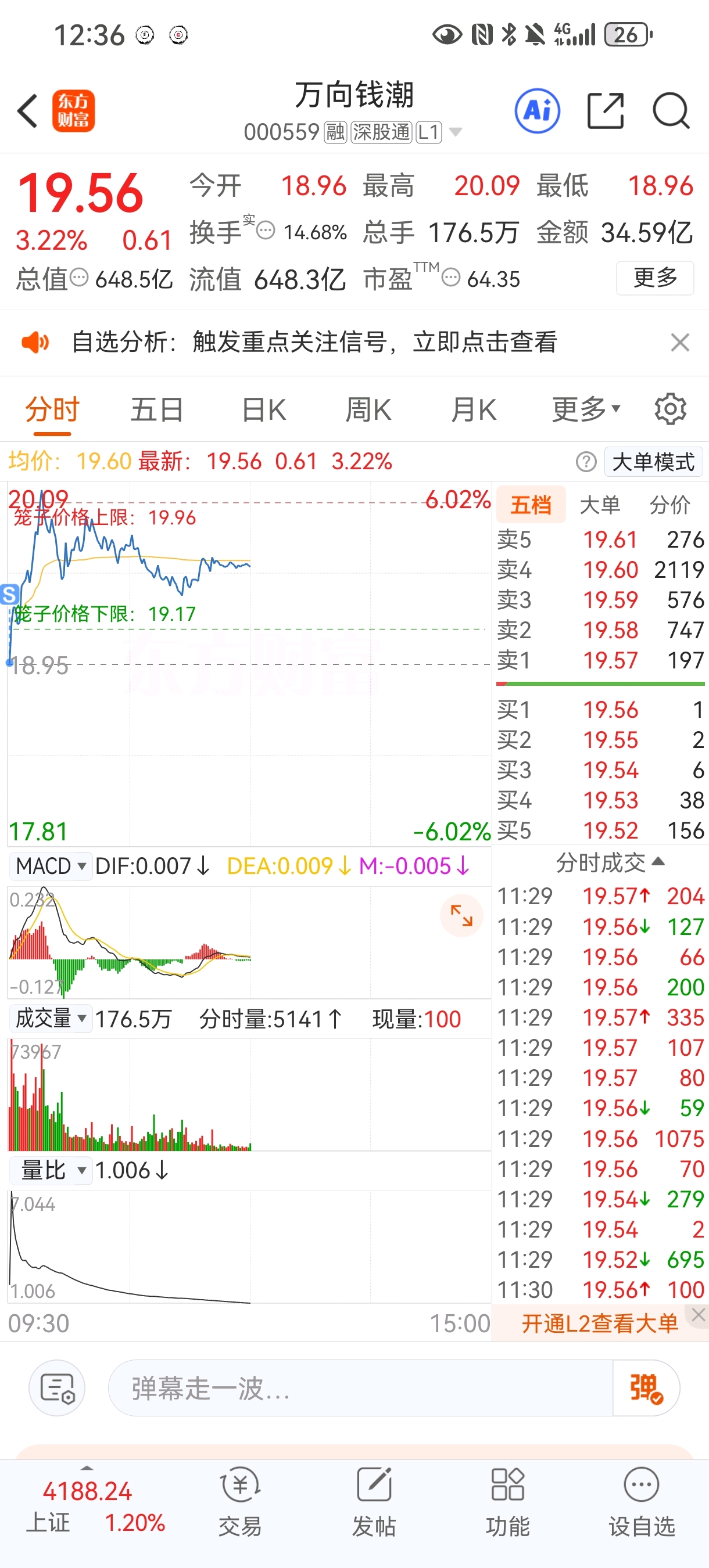 $万向钱潮(SZ000559)$ 第一次当小丑,竞价水下把我骗走了,还想着卖了等会儿水下五个点接,结果不给机会,我悔啊!