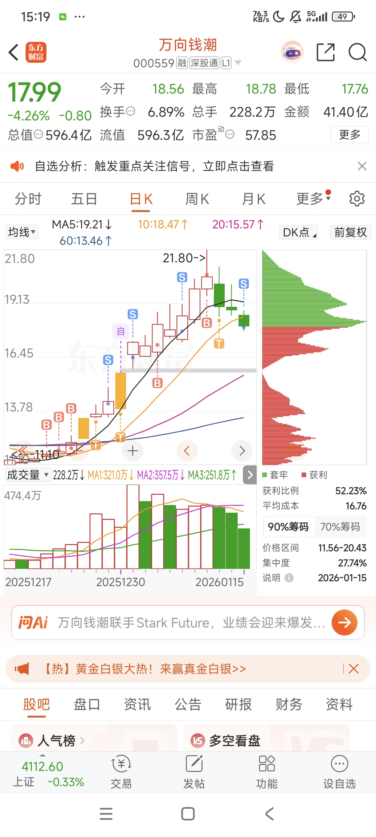 $万向钱潮(SZ000559)$ 从底部拿住挣了两万,卖飞了冲高追回来赔两万六,感谢万向前段时间让我开心了几天,是我自己的错