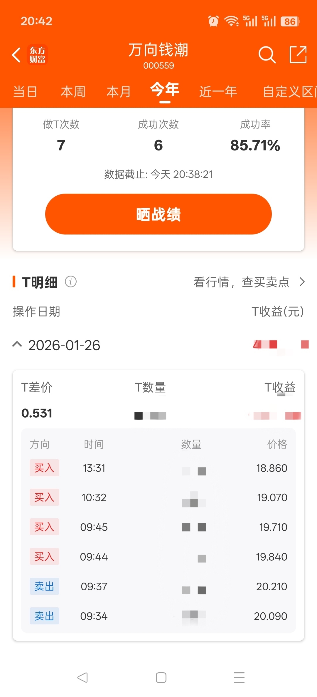 $万向钱潮(SZ000559)$ 早上开车耽误一下,踢了一半仓,可惜怕踢飞买早了,下午继续加仓,只要跌就持续加仓。既然看好就坚定持有,大家一起加油,让空叫,2026咱们旺旺旺!