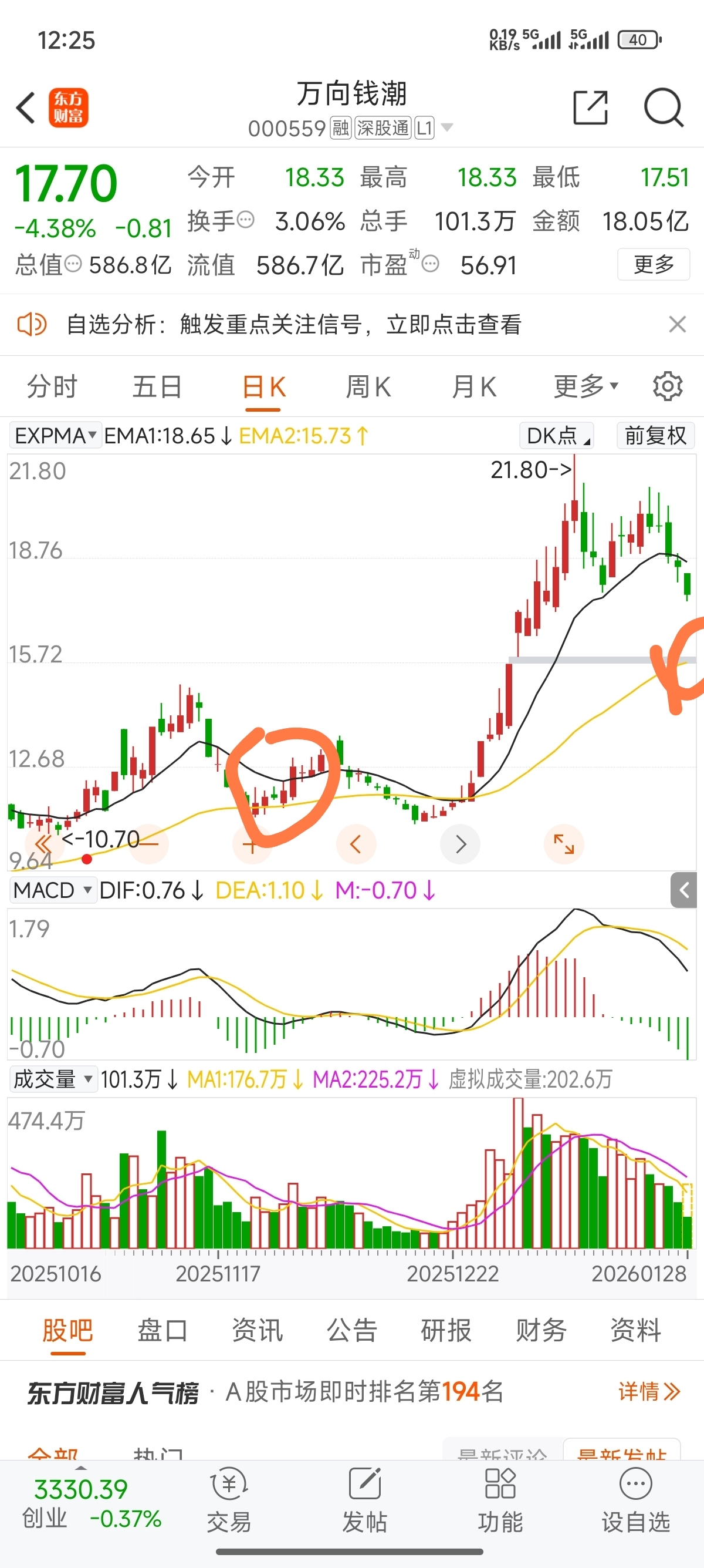 $万向钱潮(SZ000559)$ 这里有支撑。