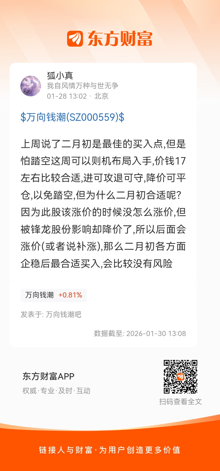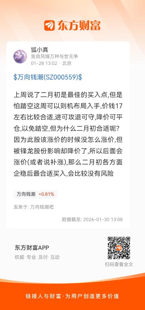 温馨提示: 1.根据《证券法》规定,禁止编造、传播虚假信息或者误导性信息,扰乱证券市场;2.用户在本社区发表的所有资料、言论等仅代表个人观点,与本网站立场无关,不对您构成任何投资建议。用户应基于自己的独立判断,自行决定证券投资并承担相应风险。《东方财富社区管理规定》