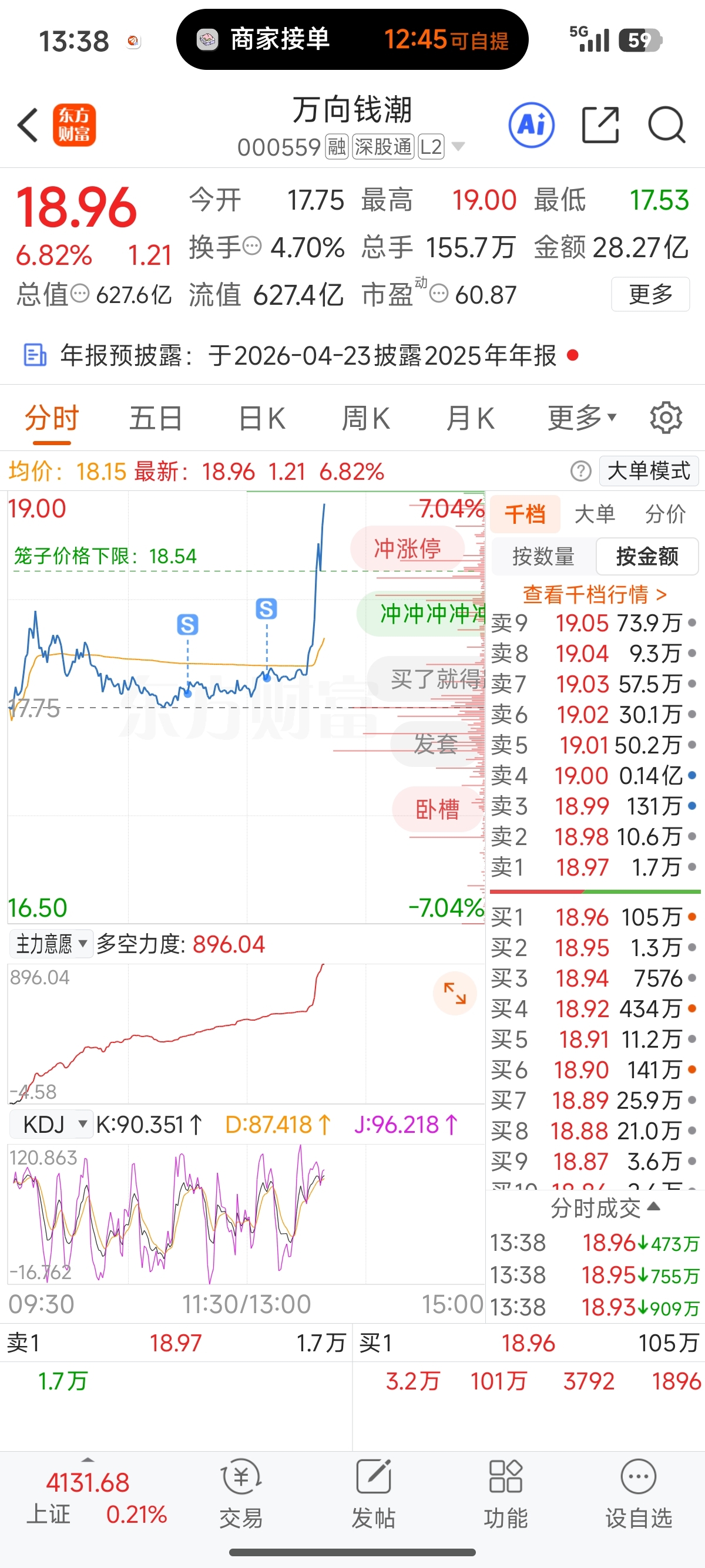 $万向钱潮(SZ000559)$ 拿了3周就差我这30手
