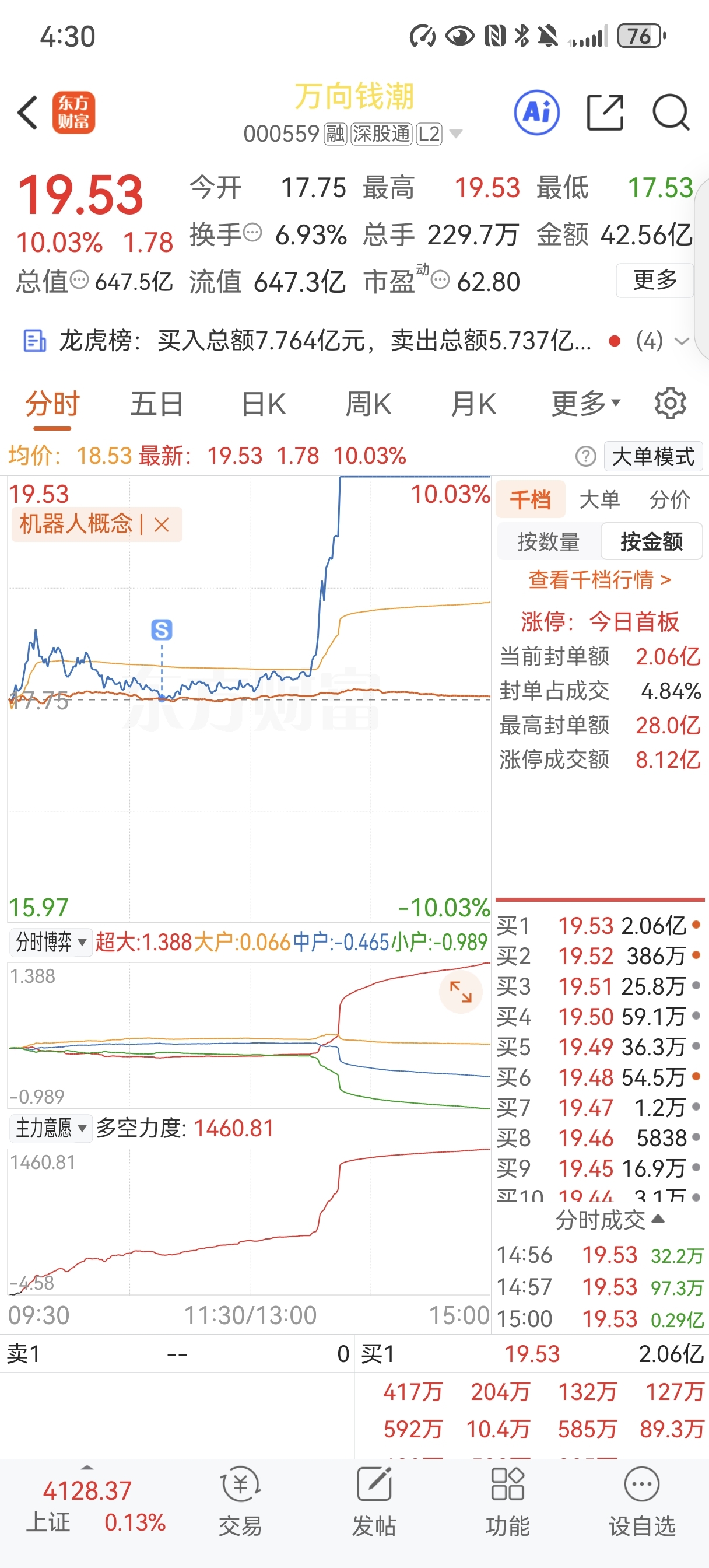 $万向钱潮(SZ000559)$ 高手的操作