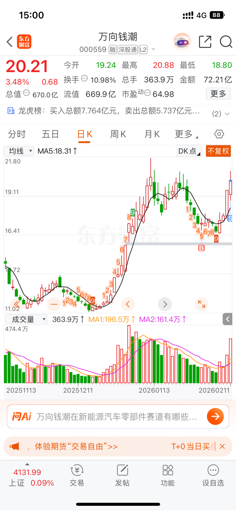 $万向钱潮(SZ000559)$ 没吃饱也走了