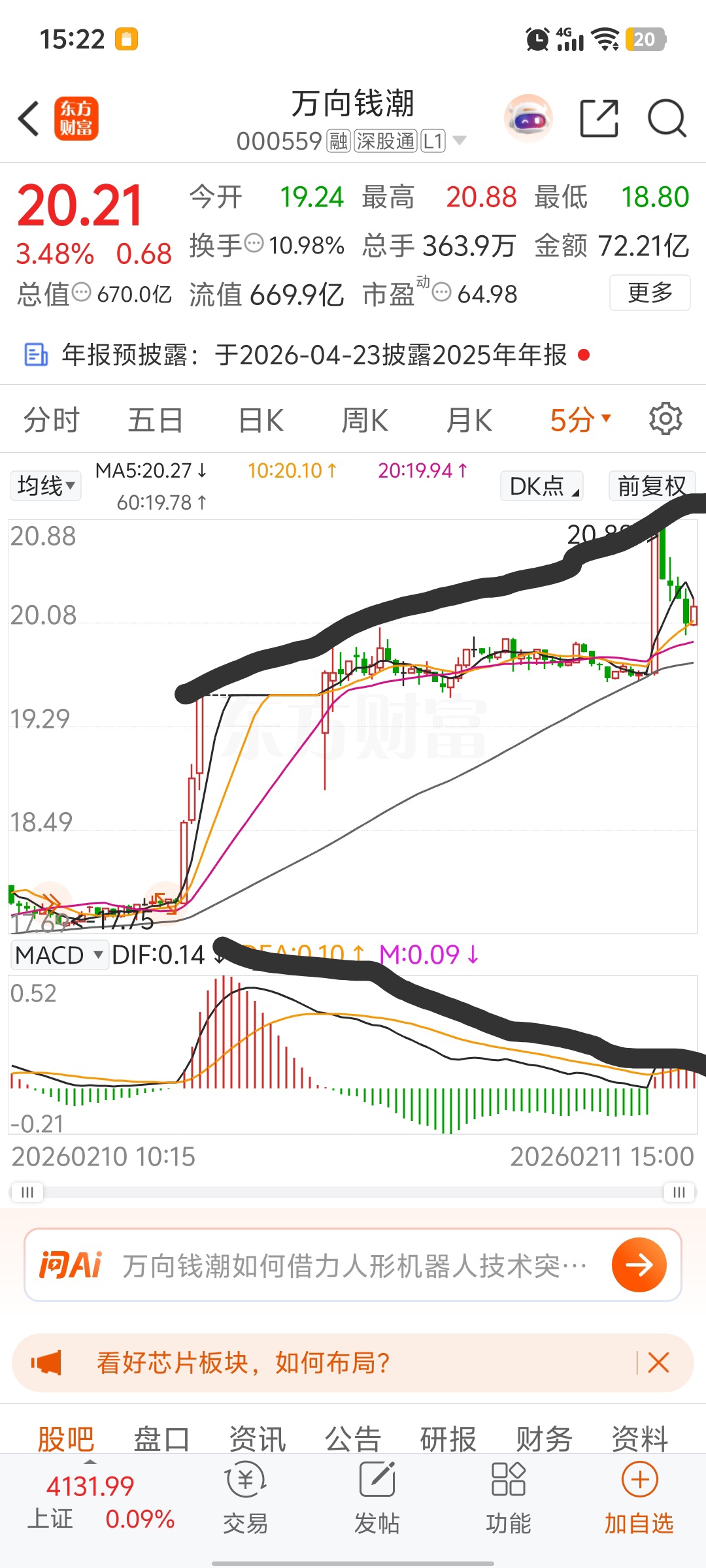 $万向钱潮(SZ000559)$ 这属不属于顶背离