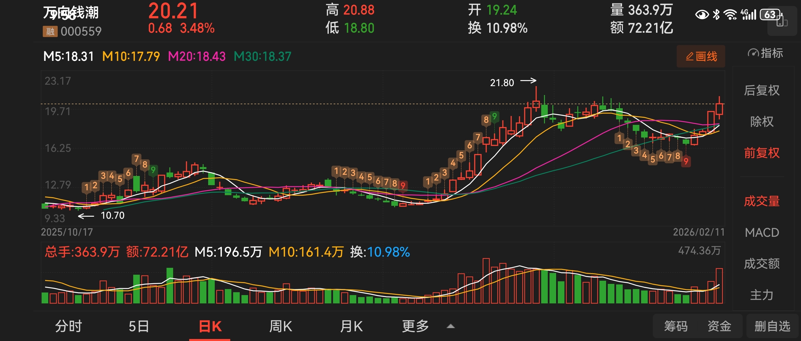 $万向钱潮(SZ000559)$ 周四最后分享一天,节前就不分享了,明天也是资金兑现潮,周四预估大盘会回踩二十日线附近!所以早盘疑似有下探行情!这都不用紧张!持优质股过节就好!看看你手里拿的什么票?好的行情都在节后了,等待验证哈