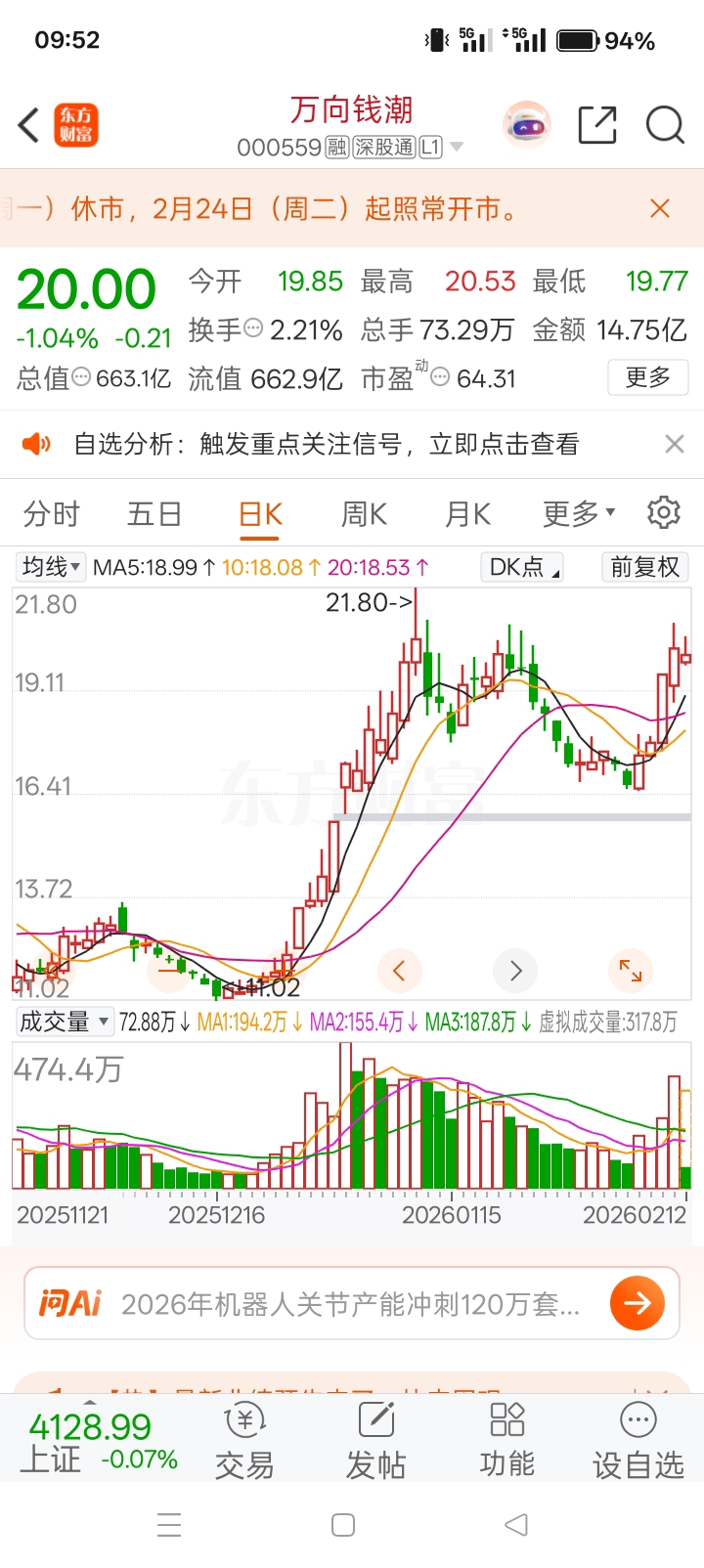 $万向钱潮(SZ000559)$ 钱老板,继续拿好等待,等待第二部攻势!强者恒强!!