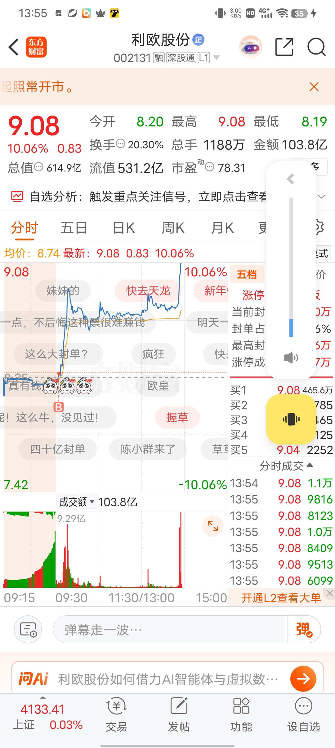 早上果断换个利欧股份