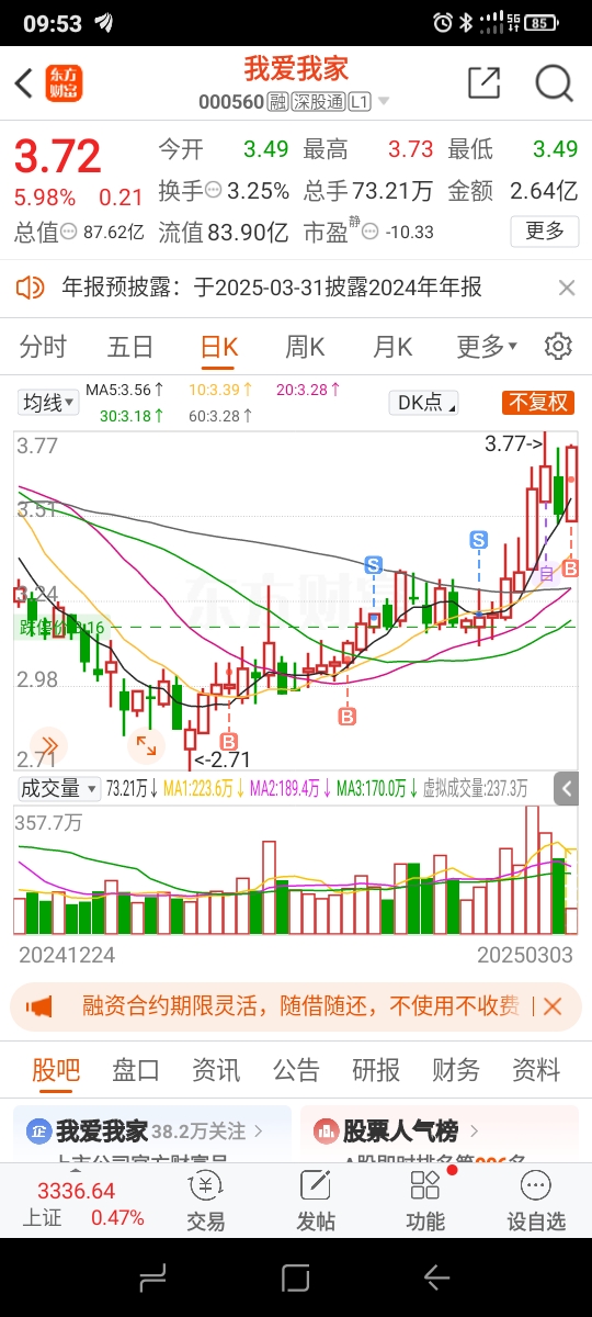 $我爱我家(SZ000560)$ 上次卖飞了,今天我又回来啦