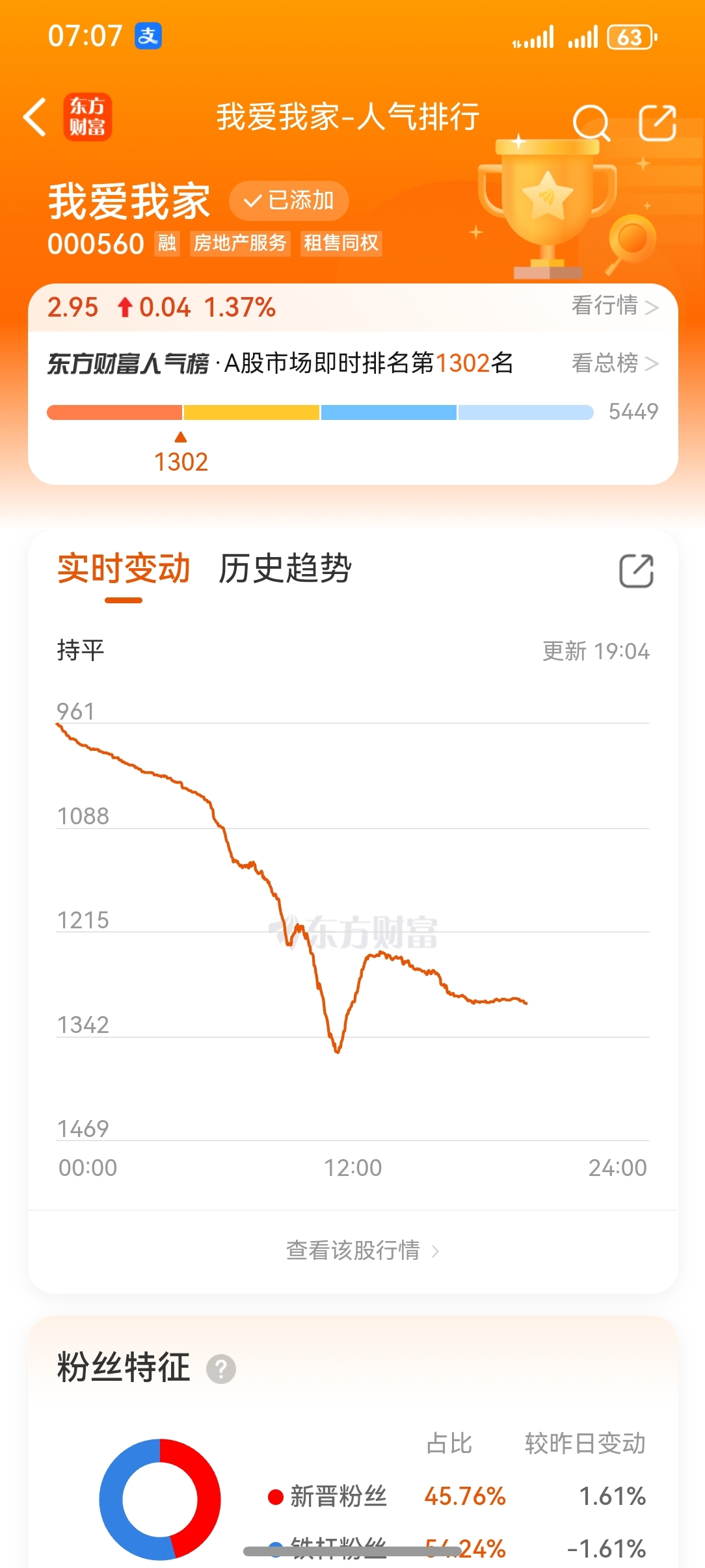 $我爱我家(SZ000560)$ 公告新闻对人气毫无提升,降低明天的期望。