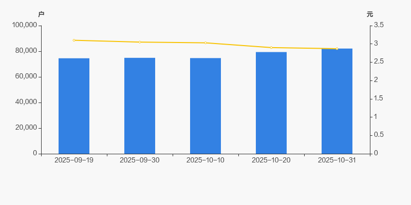 2025年9月19日至今,公司股东户数显著增长,区间涨幅为10.19%。2025年9月19日至2025年10月31日区间股价下降7.42%。